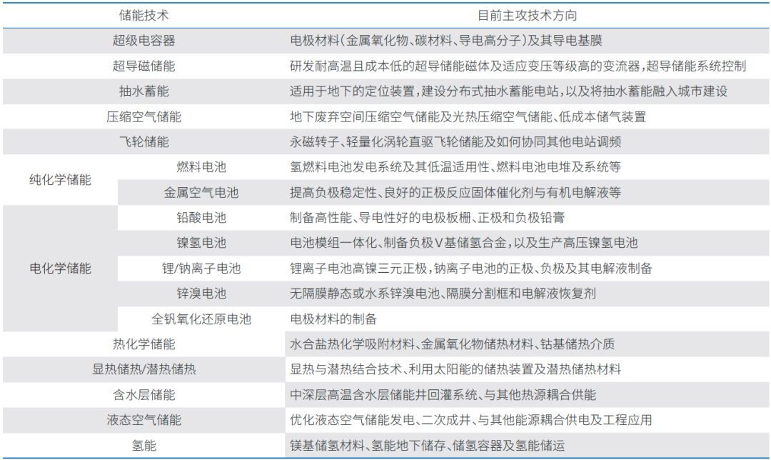 表 各项储能技术目前主攻方向
