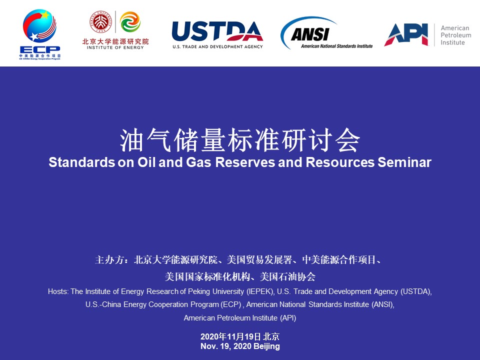 中美油气储量评估标准国际研讨会于北大成功举办经有关部门批准,2020年11月19日,蘑菇视频 联合中美能源合作项目、美国国家标准机构、美国石油学会、美国贸易发展署等机构在蘑菇视频 成功举办了“油气储量评估标准国际研讨会”。2020-11-19 -