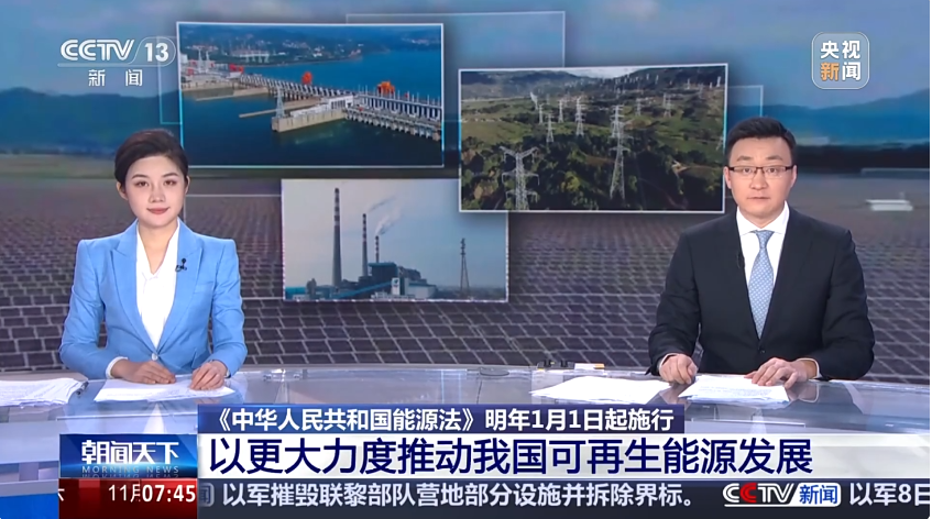 央视新闻:《中华人民共和国能源法》明年1月1日起施行 以更大力度推动我国可再生能源发展